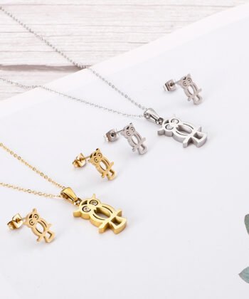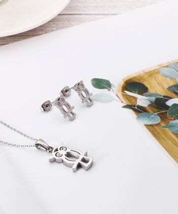 Empty Owl Necklace Stainless Steel Earring Item Set