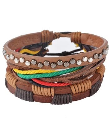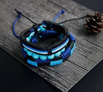 Leather Bracelet Men Multilayer Bead Bracelet Punk Wrap Bracelets for Women Vintage punk Men Jewelry
