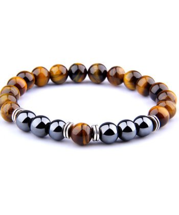 Explosion Style Yellow Tiger Eye Bracelet Fashion Simple Obsidian Alloy Separator Elastic Bracelet