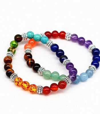 Reiki ancient silver natural stone agate tiger colorful crystal bracelet seven chakra Yoga Bracelet