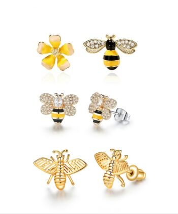 3 Styles Korean Inlaid Crystal Rhinestone Bee Earings For Women Sweet Beauty Simple Atmosphere Stud Earrings D333