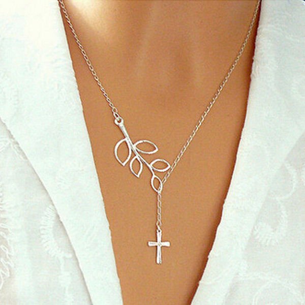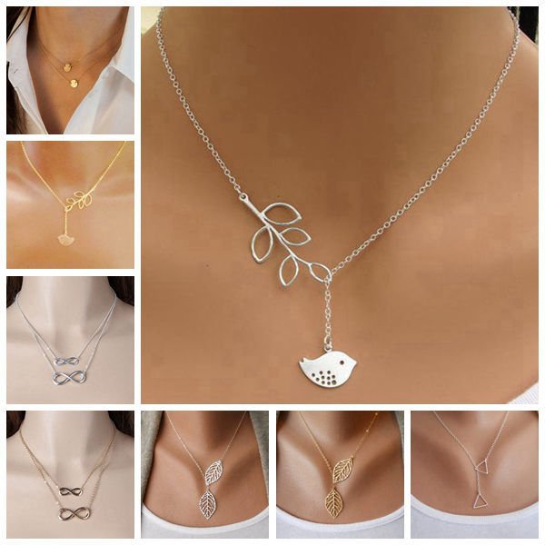 Gold Silver Leaves Bird Cross Infinity Pendant Necklace For Women