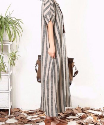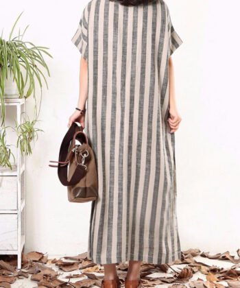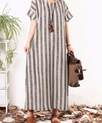 Be the first to review “Vertical Striped Dress O-neck Short Sleeves Dresses”