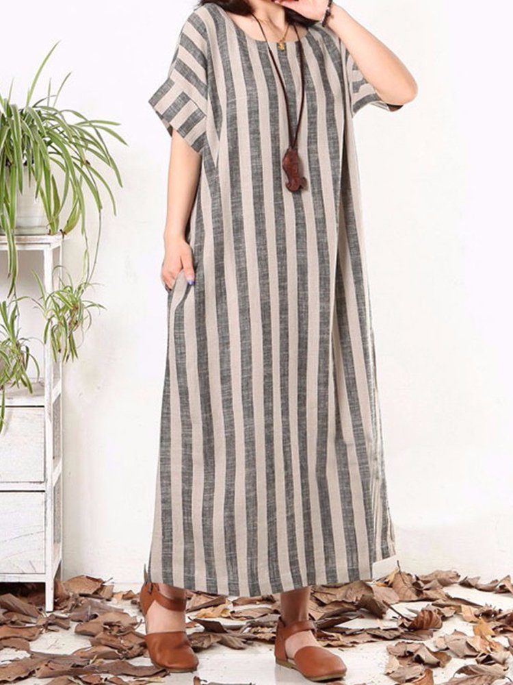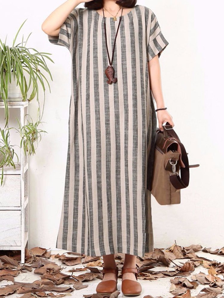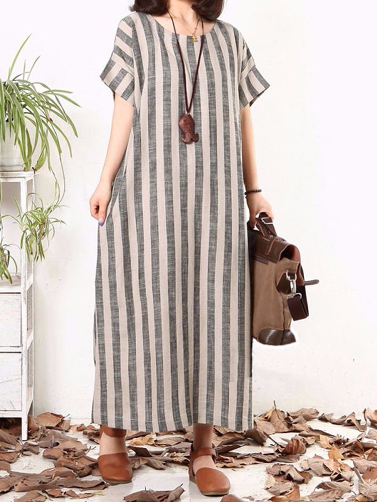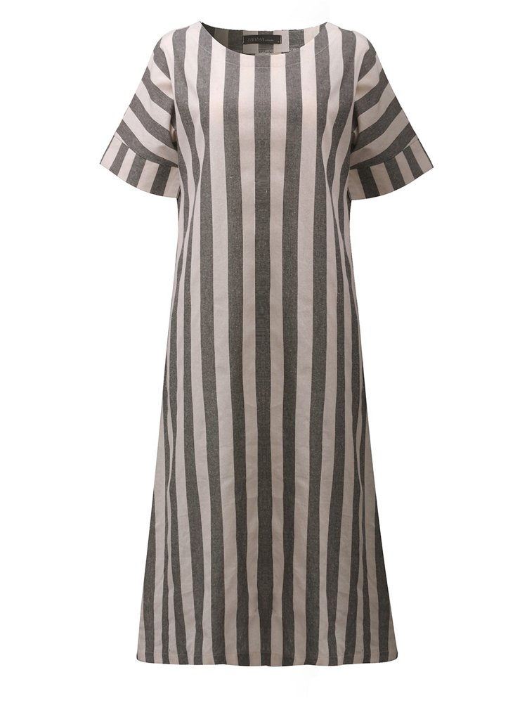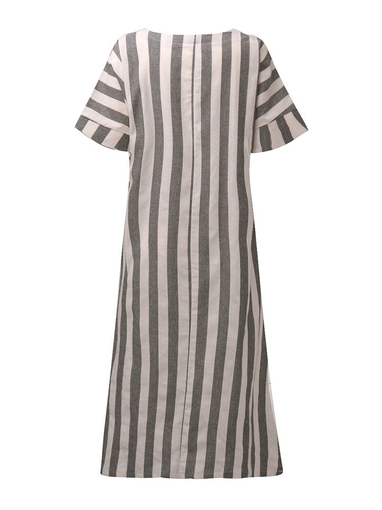 Vertical Striped Dress O-neck Short Sleeves Dresses