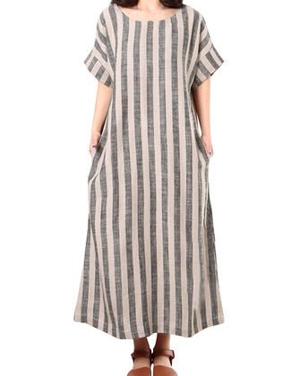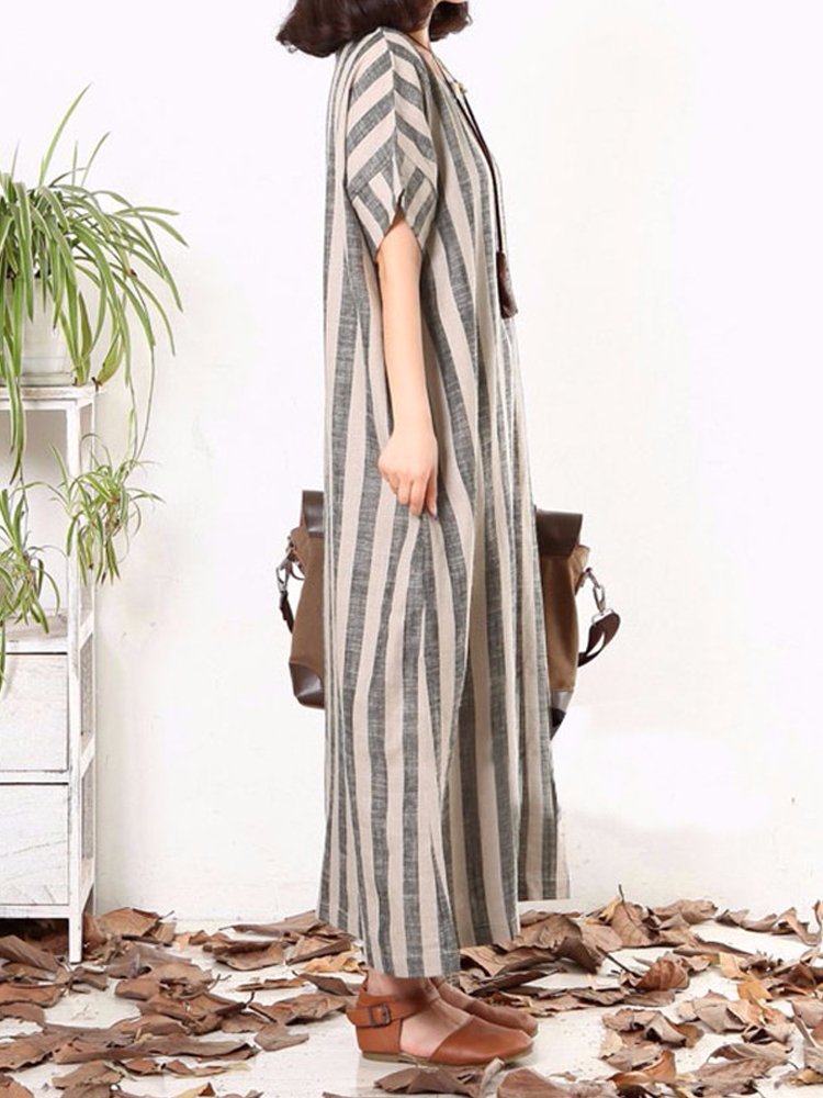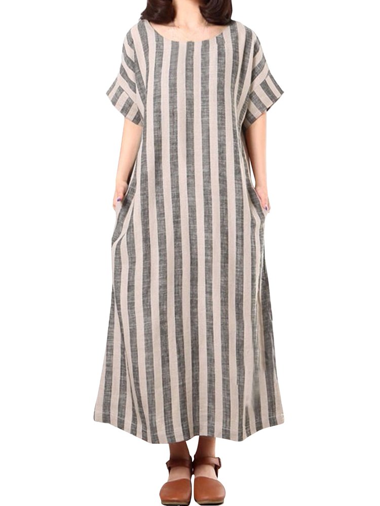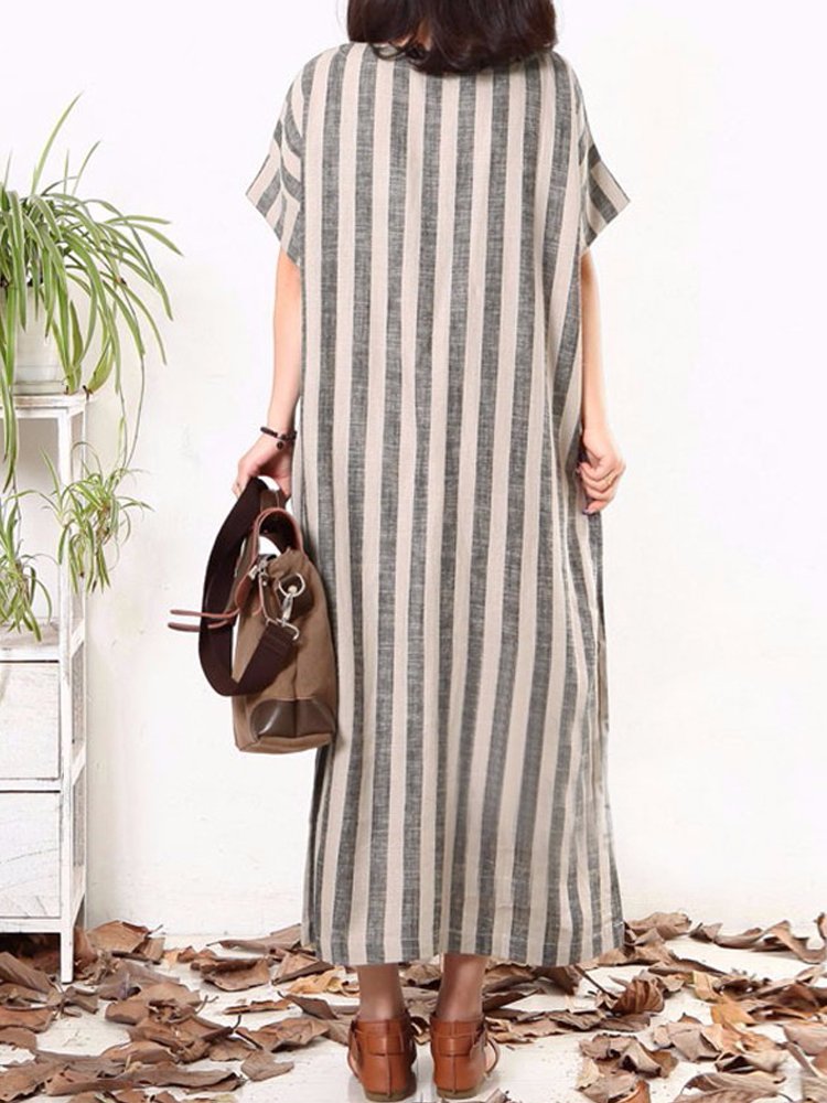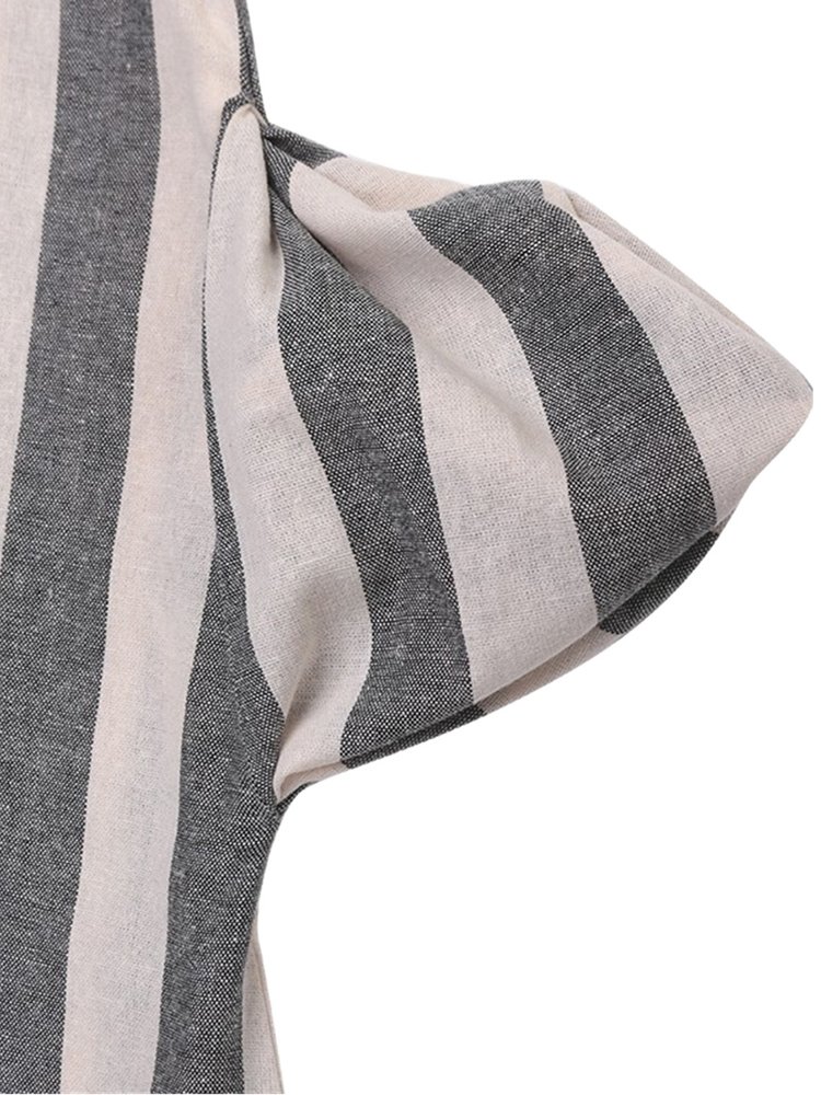 Vertical Striped Dress O-neck Short Sleeves Dresses